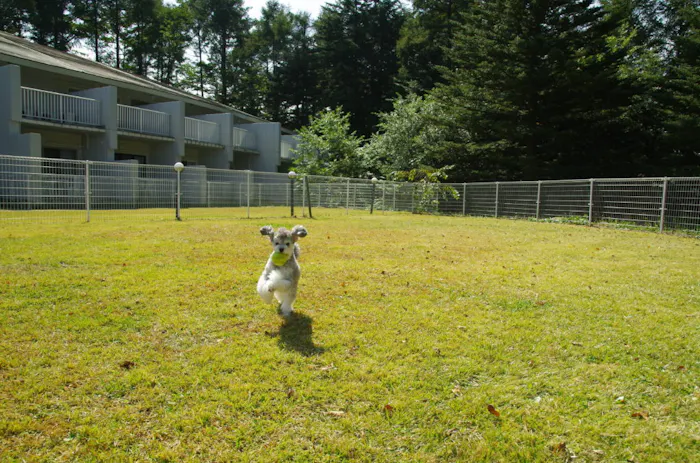 ホテル前の広々とした天然芝のドッグランは、ナイター照明付きで22時まで利用できるので、夜のお散歩が日課のワンちゃんもきっと満足してくれるでしょう。