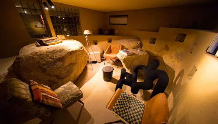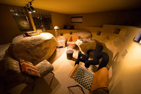 宿にそういう場所を初めに作り始めたのが広島の「庭園の宿 石亭」ですね。全12室という部屋数に対して、ライブラリー、バー、他にも色々な面白い小部屋があって、随所に椅子が置かれている。部屋以外の居場所でバリエーションを作っていて、滞在が楽しいものになります。