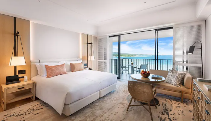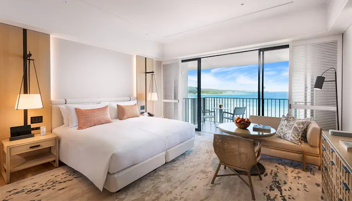 ホテルの目の前にはコーラルブルーに輝く海と白砂のビーチが広がり、360室ある客室全てがオーシャンビュー&テラス付。プライベートプールと天然温泉を備えたヴィラ客室もあり、まさに非日常のリゾートステイを叶えてくれます。