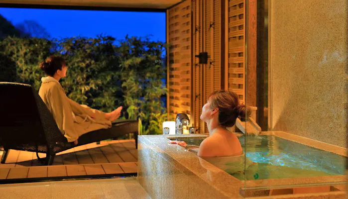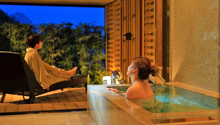 3.掛け流しの温泉もアップグレードの夕食も楽しめる露天風呂付客室