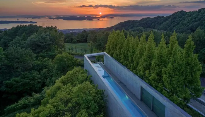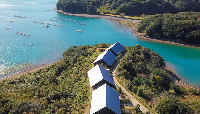 瀬戸内の多島美を一望するオールスイートの宿「瀬戸内リトリート 青凪 by 温故知新」は、建築家・安藤忠雄氏設計の全7室のリゾートホテルです。かつて美術館として使用されていた建物はモダンなコンクリート打ちっぱなしスタイル。
