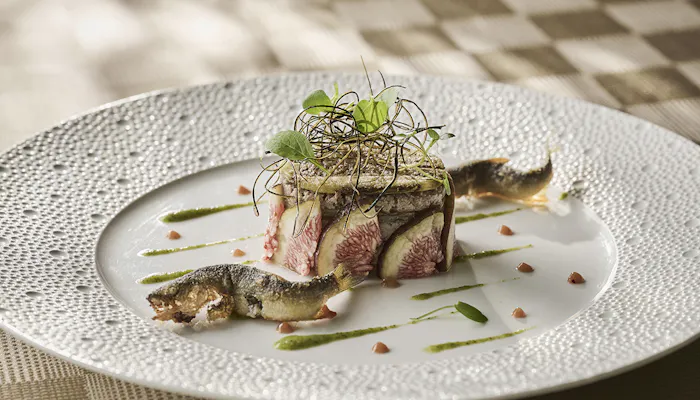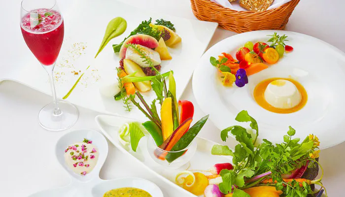 伊豆の自然とガストロノミーを融合させたディナーは、オーベルジュ・リゾートの誇りがにじみます。フランス国家最優秀職人賞に輝く偉人のもとで研鑽を積んだ若き料理長の、感性が光るフランス料理は、目も舌も、魂までも新鮮な感動で満たすエモーショナルな体験になるでしょう。