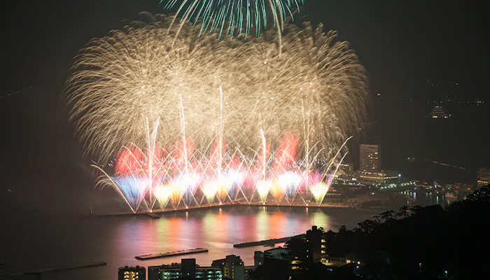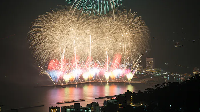 夏の風物詩と言えば、夜空を鮮やかに彩る花火。1952年に始まった歴史ある花火大会「熱海海上花火大会」は、夏だけでなく一年を通して開催される熱海の名物イベントです。