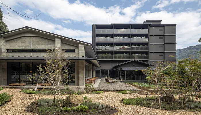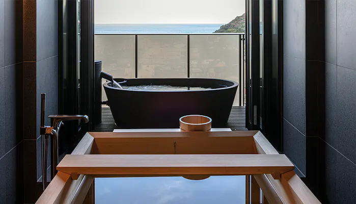 2020年11月、熱海の奥座敷・小嵐町に誕生した「SOKI ATAMI」は、全54室が温泉風呂付。大浴場には、伝統的な湯治の一つである蒸気湯から着想を得たスチームサウナ(女性専用)もあり、心身共に養生できる隠れ家のような温泉宿です。