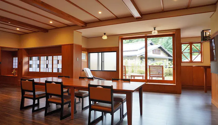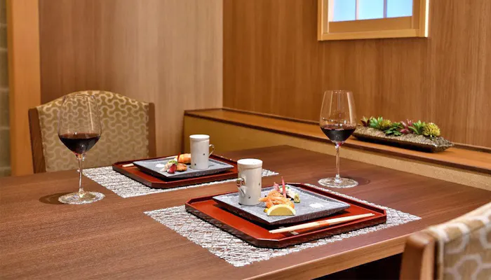 プライベートかつ上質な滞在を重視した「琴音」は、お部屋食又は個室の食事処が確約。7タイプのうち「DXスイート」「ジュニアスイート」「コーナースイート」は、室内にある専用のダイニングスペースで、夕・朝共にお部屋食となっています。