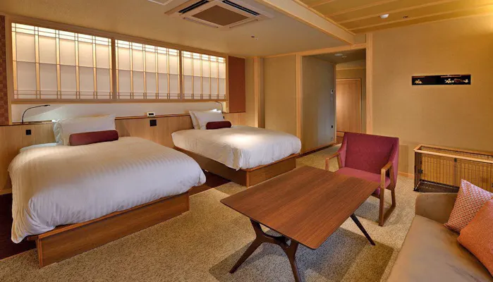 リニューアルした客室:温泉・サウナ付きプレミアムスイート 心楽【グウ】、源泉かけ流し温泉付きプレミアムスイート 心楽【トウ】