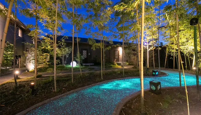 西郷隆盛や坂本龍馬など、歴史上の英雄にも愛された鹿児島の名泉・霧島日当山温泉。「全室露天風呂付 onsen garden 湯本庵 清姫」は、1916年に創業した老舗温泉宿「清姫温泉」が、未来の100年を見据えて2018年にグランドオープンしたデザイナーズ旅館です。