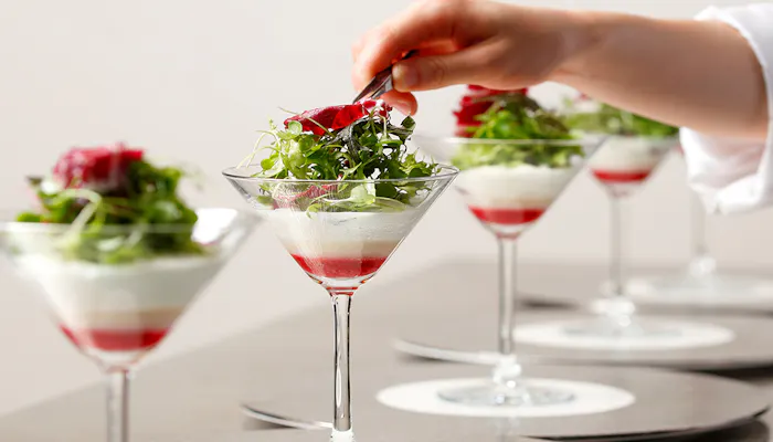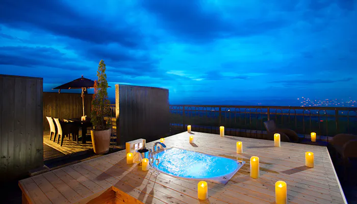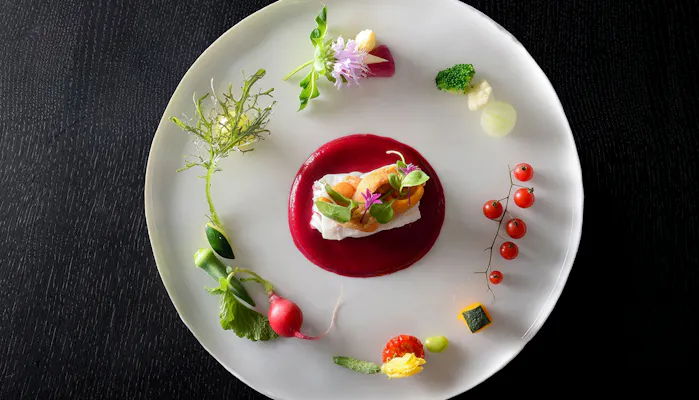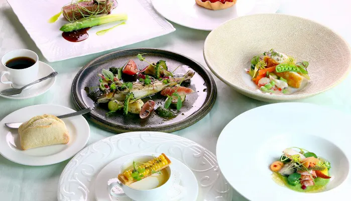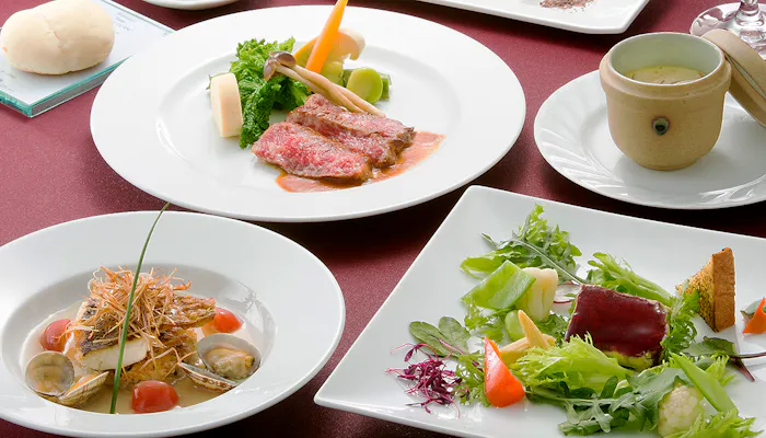 阿蘇の山々を望むフレンチレストランで、多国籍の要素を加えたフルコースを召し上がれ。九州各地から仕入れた海の幸、山の幸などの旬の恵みを、漢方やコチュジャン、スパイスを用いた創作フレンチは、体に優しいお料理と評判。目にも美しい彩り豊かな一皿を、絶景の中でいただけば、これまで体験したことのないリゾートステイとなることでしょう。