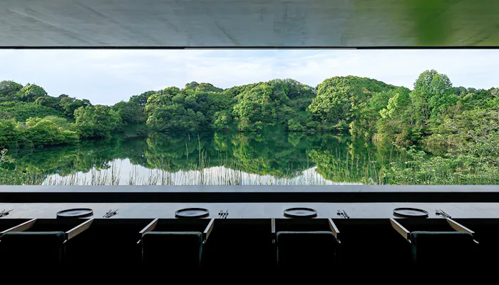 愛媛県・道後温泉から南の方に一足延ばした、砥部町の湖畔に佇む「時地人- JIJIJIN Matsuyama」は“里帰り”をコンセプトとしたオーベルジュリゾート。ランドスケープを活かして造られた全10室のスイート&ヴィラは、周囲の自然と調和し、プライベートな時間を過ごすには最適な設えです。