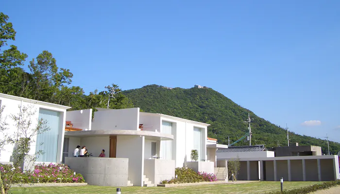 フレンチシェフによって生まれた1日5組限定の「オーベルジュ ドゥ オオイシ」は、香川県・屋島の麓に佇む、隠れ家のようなオーベルジュです。白を基調とした外観に緑の島と青い空のコントラストは、どこかフランスの片田舎を感じさせる雰囲気。瀬戸内海に面したスイートルームで、波音に耳を傾けて海の風景を眺めていると、心が解き放たれそうですね。