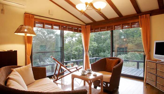 熊本県と大分県の県境、瀬の本高原に位置する「ア・マ・ファソン」は、美食家のための一軒家オーベルジュ。阿蘇五岳と九重連山に囲まれ、デラックスとスタンダードの2タイプ全9室のお部屋の窓からは、移ろう季節を愛でることができます。心地よい風、木々の芽吹き、夕日に色づく山々を感じれば、日常に追われて見落としていた大切な時間を取り戻せ“自分らしく”過ごせそうですね。