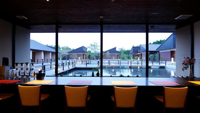 溝辺鹿児島空港ICより車で30分。霧島連山の緑や深山霧島の薄紅色など、四季ごとの色彩に彩られる「きりしま悠久の宿 一心」。非日常感漂う水盤を取り囲む7棟の和モダンの離れは、自家源泉掛け流しの湯に浸かれると評判です。ナチュラルな色合いに寛ぐ「和洋室(ふじ)」をはじめ、黒塗りの重厚感に心鎮まる「和洋室『もみじ』」など、いずれも都会の喧騒から離れ、安らかな時間を過ごせそうです。