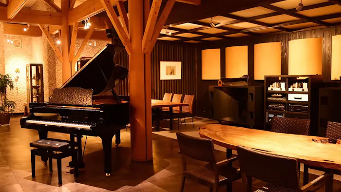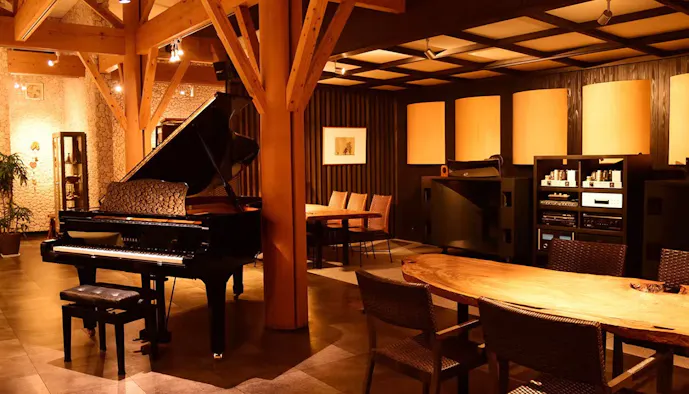 “音楽が日常を豊かにしてくれる”をコンセプトに、館内にはオーディオファン垂涎のウェスタン・エレクトリックの音響機材や、ピアノなどがアートのように点在。風の音や鳥のさえずりなど、自然の音との共鳴はきっと心震わす体験です。雄大な景色を望むレストランでは、無農薬野菜にこだわったヘルシーで滋味深い食事を堪能できます。細胞の隅々まで満たされる豊潤な時を送れそうですね。