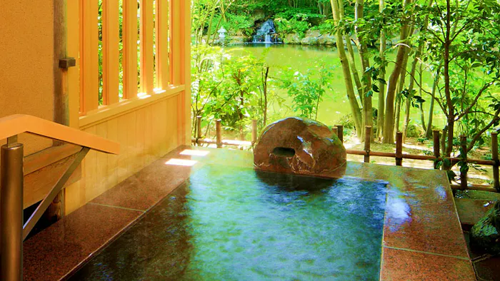 12室ありますが、おすすめは、畳の廊下を渡った先にある「露天風呂付き離れ特別室(スイートヴィラ)」。3つの和室と檜の内湯、庭を望む露天風呂を備えた離れで、このお部屋なら上質なリラックスを約束されたようなもの。露天の湯に浸かりながら眺める庭は新緑や紅葉、雪見の時季それぞれに味わい深く、季節を替えてまた訪れたくなります。