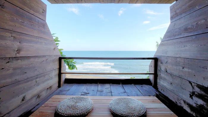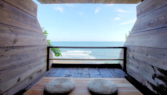 1.アヨロ海岸に佇む木造りの瞑想室で澄んだ空と潮騒に癒される