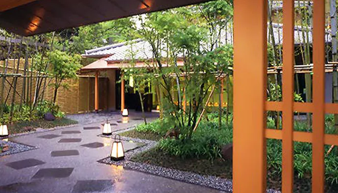 有馬温泉駅から歩くこと約3分。賑わう温泉街の喧騒から一線を画す「有馬温泉 欽山」は、1929年創業の老舗温泉旅館です。エリア屈指の美食の宿としても知られており、旬の食材を用いた京風創作懐石料理が自慢。大浴場には、有馬温泉の名物ともいえる茶褐色の金泉を湛えています。