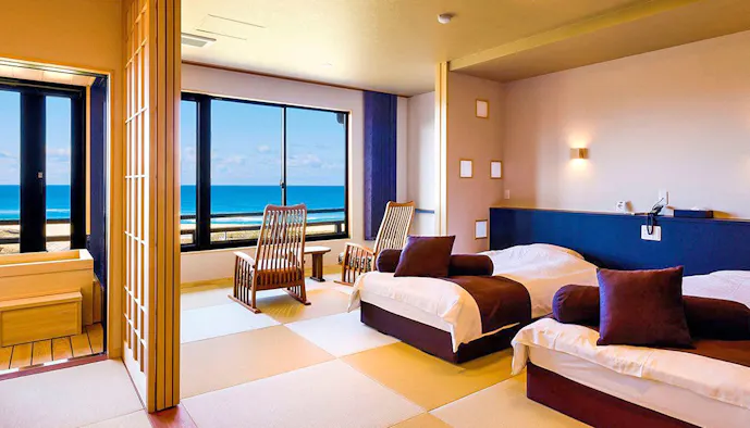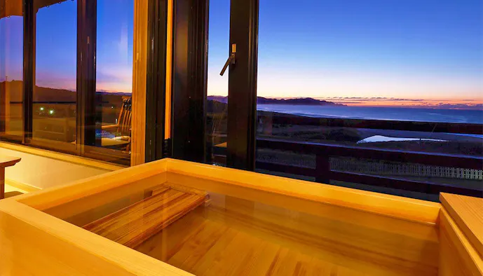 リニューアルした客室:NEW【オーシャンフロント】温泉展望ヒノキ風呂付和室【禁煙】