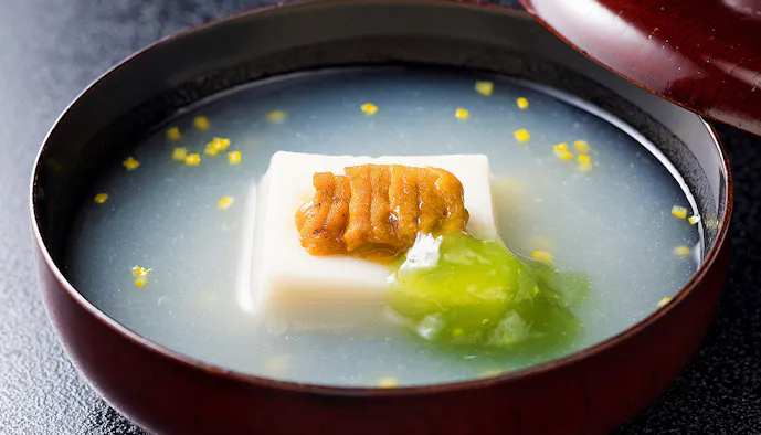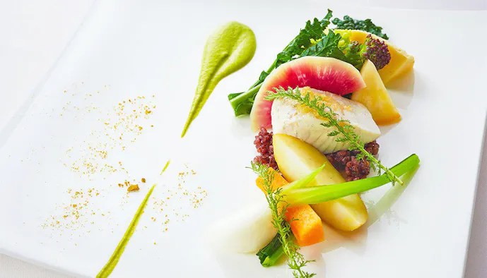 お料理は宿の前身である、東京芝白金の料亭「柳生」の本格割烹と京懐石が礎。「熱いものは熱く、冷たいものは冷たいままで」というモットーが守られているのは、もてなしの心があればこそ。伝統料理の「温石焼」や「ごま豆腐」も絶品です。