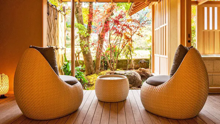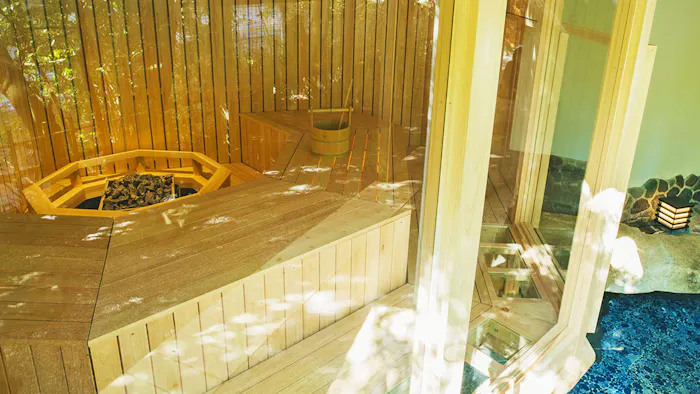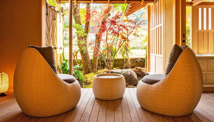 特筆したいのが、サウナブームの仕掛け人・松尾大氏監修の「茶室サウナ」の存在。“サウナシュラン”にもランクインしている個性派サウナです。このほか、洞窟のような露天風呂が備わる「天狗の湯」などもあり非日常感たっぷり。ひたすら体を整えたいならこの宿へ。夫婦の会話もいつも以上に弾みそうです。