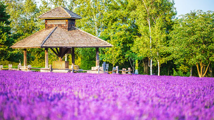 北海道・中富良野町にある「ファーム富田」は、国内でも指折りの広さを持つ花の名所。敷地内には13か所の花畑があり、4月中旬ごろを皮切りに季節ごとの花々が咲き誇ります。一番の見どころとも言えるラベンダー畑は、6月下旬ごろから色づきはじめるのだそう。