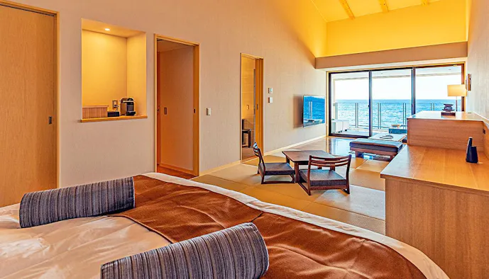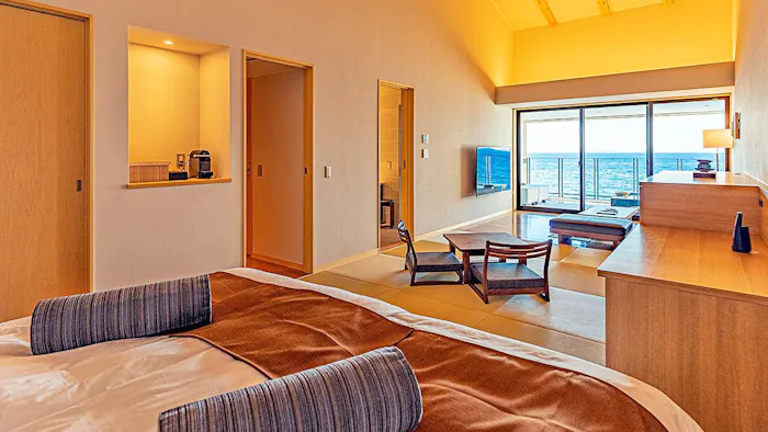 人々が持つ免疫力を高めることに着目しているこちらの宿では、館内に温泉ミスト浴ができる「ルフロ湯治」を完備。食事はバランスを考慮し、日本料理をベースにした身体に優しい逸品を提供しています。海の絶景とミスト浴、そして美味しい料理で、心と身体をリフレッシュする滞在はいかがでしょう。