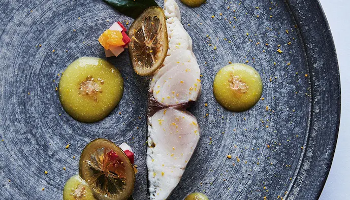 伊豆の自然とガストロノミーを融合させたディナーは、オーベルジュ・リゾートの誇りがにじみます。フランス国家最優秀職人賞に輝く偉人のもとで研鑽を積んだ若き料理長の、感性が光るフランス料理は、目も舌も、魂までも新鮮な感動で満たすエモーショナルな体験になるでしょう。
