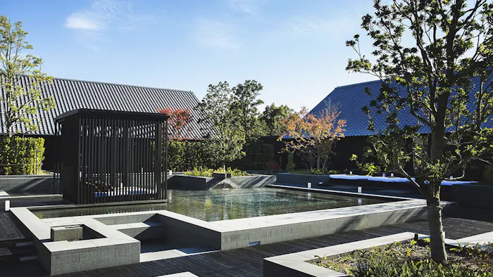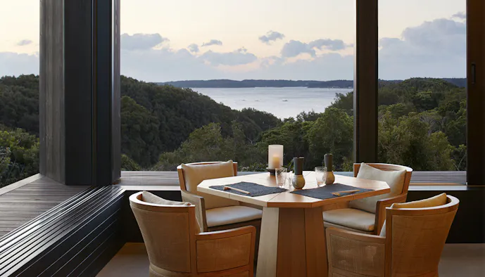 伊勢志摩国立公園内の英虞湾沿岸に佇む「アマネム」は、アマン初の温泉を有するリゾートとして誕生しました。豊かな自然に溶け込む様子はまるで海外リゾートのよう。敷地内に点在する平屋建ての客室32室は、99平米以上のゆったりとした造りで、それぞれに温泉が引かれた専用浴室と縁側を備えます。