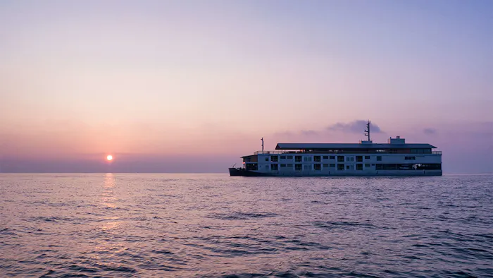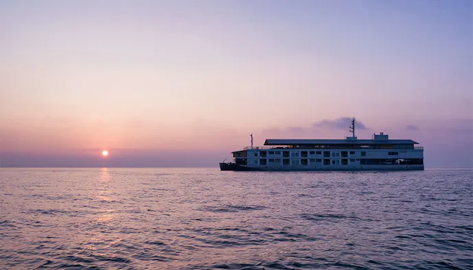穏やかな瀬戸内海に漂う、他に類を見ない贅を尽くした客船「ガンツウ」。エンジン音や振動もほとんどないため、船の上にいることを忘れてゆったりと過ごせるでしょう。1~2階に位置する客室は、全19室すべてが50平米を超えるテラス付のスイートルーム。