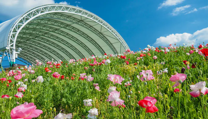 愛知・岐阜・三重の3県にまたがり、13か所もの公園を有する「国営木曽三川公園」。国内最大規模を誇る園内の中でもおすすめなのが、高さ138メートルの展望タワーがある「138タワーパーク」。ネモフィラやシャーレーポピーなど、季節ごとに咲く花々とタワーのコントラストは必見です。