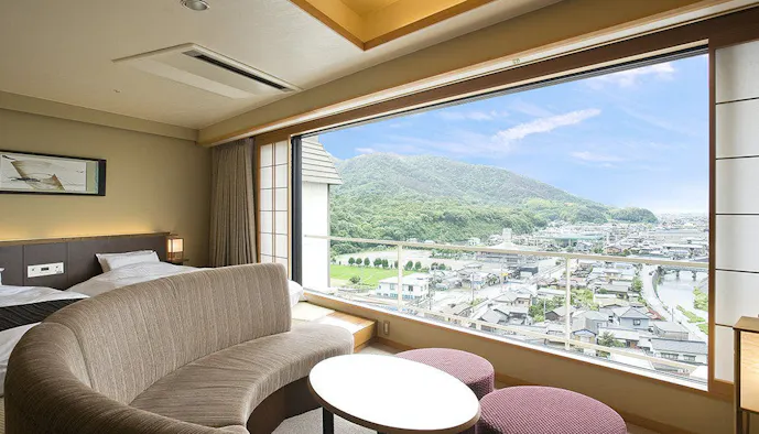 客室は次の間付の和室をはじめ、和室にツインベッドのある洋間をプラスした和洋室などをご用意。宿自慢の天然温泉は大浴場だけでなく客室でも楽しめます。宿泊者は「ナガシマリゾート」内の温浴施設「湯あみの島」も利用可能。リゾートの魅力を余すことなく満喫してみては。