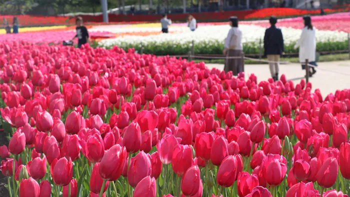 「なばなの里」は、三重県・桑名市の複合レジャー施設「ナガシマリゾート」内にある国内最大級の花のテーマパーク。約1万3,000坪の広さを誇る「花ひろば」では、3月~5月上旬にかけてチューリップをはじめとする春の花々、9月下旬~11月中旬まではダリアやコスモスなどを楽しめます。