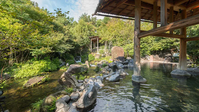 宮城県・蔵王連峰の麓、遠刈田温泉に佇む宿「温泉山荘だいこんの花」。約1万坪もの自然林の中に離れ客室がゆったりと点在しています。一部客室のお風呂や貸切露天風呂などは、すべてが自家源泉掛け流しというのも大きな魅力です。