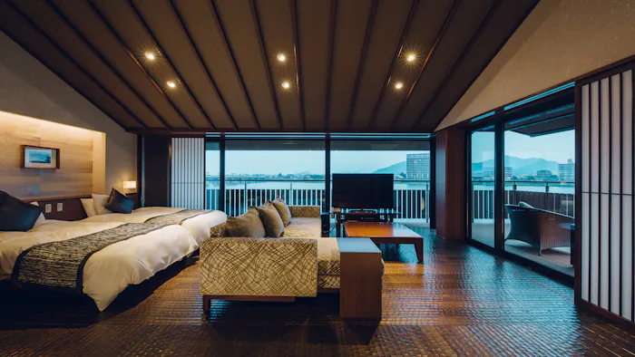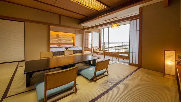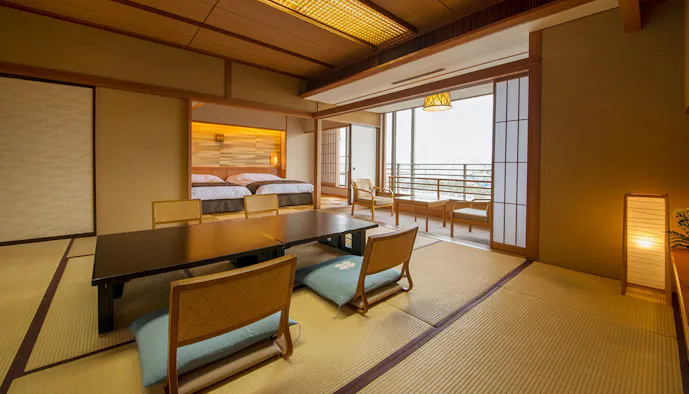 客室は次の間付の和室をはじめ、和室にツインベッドのある洋間をプラスした和洋室などをご用意。宿自慢の天然温泉は大浴場だけでなく客室でも楽しめます。宿泊者は「ナガシマリゾート」内の温浴施設「湯あみの島」も利用可能。リゾートの魅力を余すことなく満喫してみては。