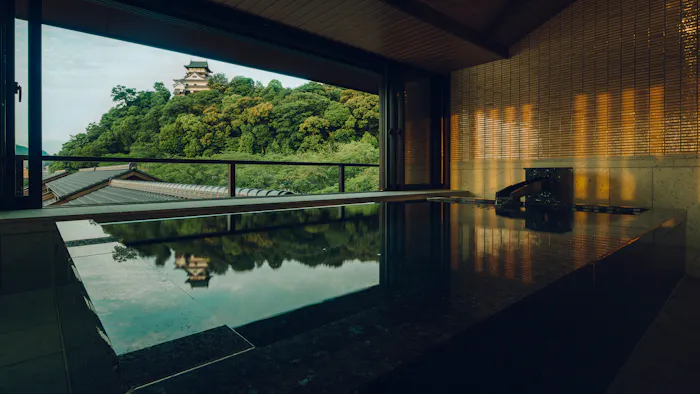 客室のお風呂だけでなく、プライベート感のある貸切風呂もおすすめ(要予約)。犬山城の別名にちなんで名付けられた「白帝の湯」は、犬山エリア唯一の天然温泉で、美肌効果も期待できると評判なのだそう。大人のための上質な宿で、絶景と温泉に癒されるひとときはいかがでしょう。