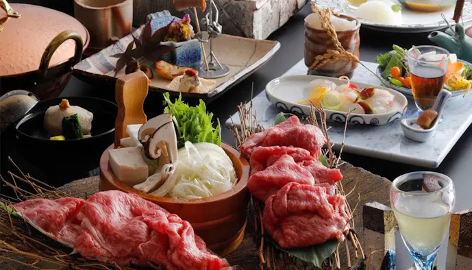 宿で振る舞われるのは、地元ならではの素材を活かした料理の数々。吟味した食材が、職人の技によって季節を感じる創作料理に仕立て上げられます。種類豊富に揃った地酒や、入手困難な全国の焼酎などと合わせて、ゆっくりと味わいましょう。