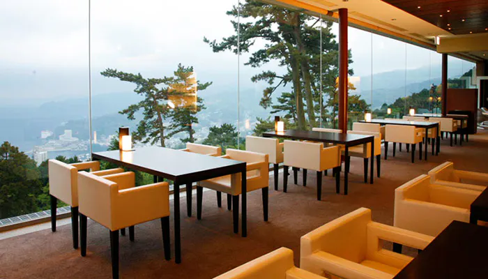 この宿で花火を鑑賞するなら「レストラン百山茶寮」もしくはラウンジへ。街の夜景とともに花火を上から眺める、いつもとは一味違った夜の芸術鑑賞になるでしょう。標高300メートルから花火を見下ろす優越感に浸りませんか?