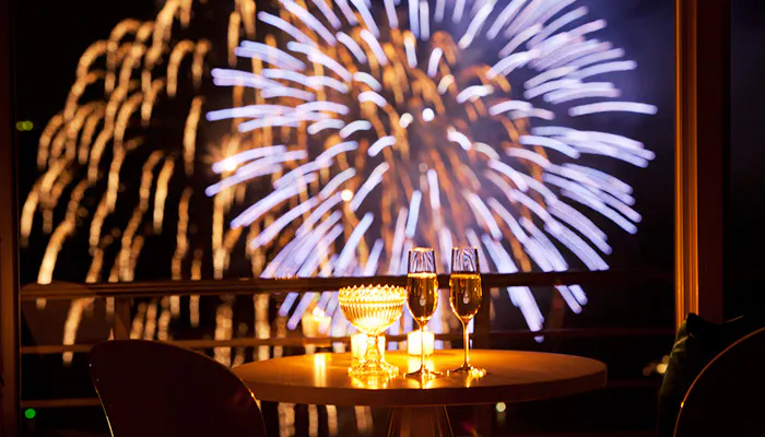 ラグジュアリーな客室で自分たちだけの花火に酔いしれる
