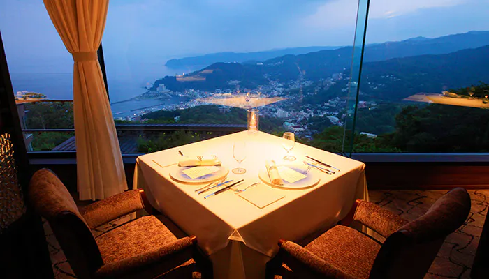 特に眺望が魅力なレストランや、ライブラリーバー、そして大浴場からは熱海の花火を眺めることができます。目の前で感じる臨場感や賑やかな雰囲気はありませんが、静かな場所でしっとり愉しむ花火大会はいかがでしょうか。食事や入浴をしながら、お好きなシーンで大人の花火鑑賞が叶います。