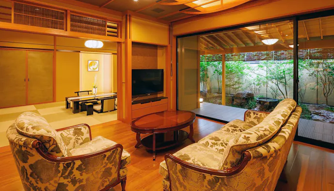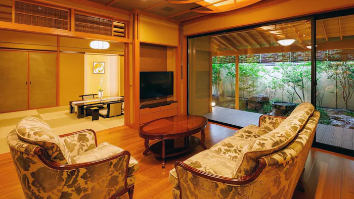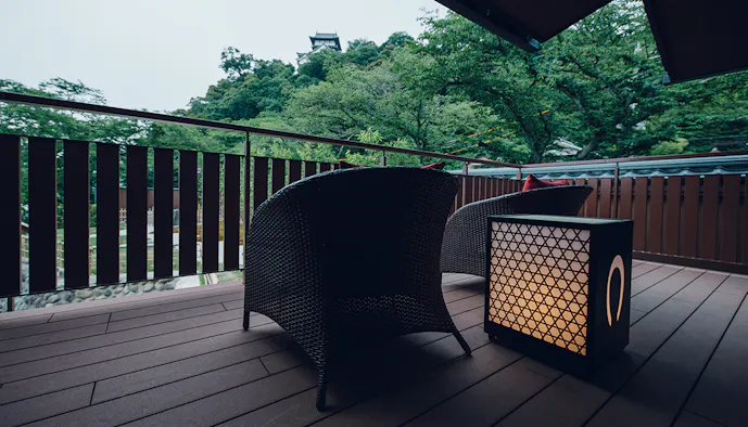 ゆったりした配置のインテリアと、大きな窓から見える絶景に開放的な気分が味わえます。犬山城に最も近い特別室「キャッスルラグジュアリースイート」のテラスからは、間近に迫る犬山城と庭園を望むことができ、ホッとくつろげる和の風情を感じられるでしょう。
