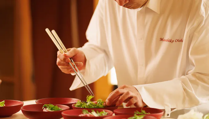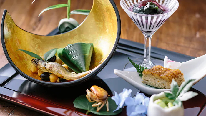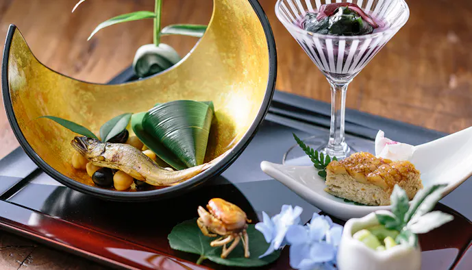 食の宝庫の鳥取ならではの料理が味わえるダイニングには、5つの個室と鉄板焼きコーナーも。館内のギャラリーでは、鳥取県在住者として初めて重要無形文化財(人間国宝)に認定された前田昭博氏の陶器をはじめとする美術品を観ることができ、五感を満たす宿泊体験が叶うでしょう。
