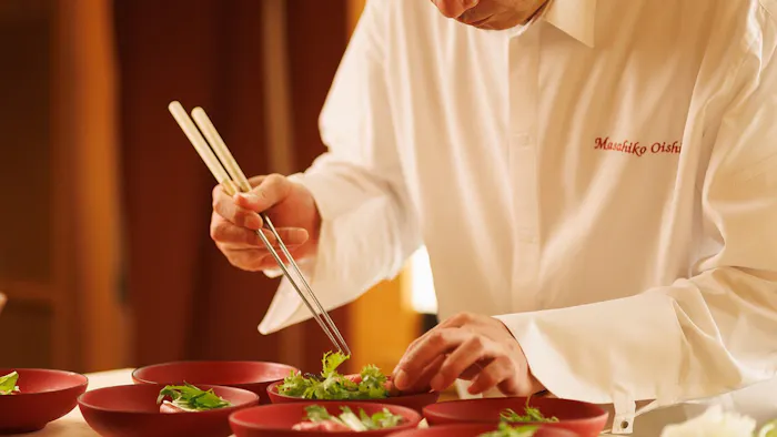 宿では、15館の系列店を持つ強みを活かし、食の匠に認定されている料理人など、一流の料理長たちが交代制で腕をふるってくれます。各料理長の個性が美食材と相まった料理の数々は、季節感を織り込んで見た目も鮮やかで、心も満たされます。伊勢の自然と不思議なパワーを宿に居ながらにしてチャージできる、そんな魅力に溢れた滞在は、ワンランク上の伊勢の旅を叶えてくれるに違いありません。