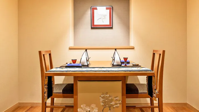 食事は、専用に設えられた「茶寮」の個室で。料理に合わせたお酒をコーディネートしてくれるプランもあります。美食と落ち着いた滞在を楽しむことができる、大人だからこそ叶う宿泊体験になるでしょう。
