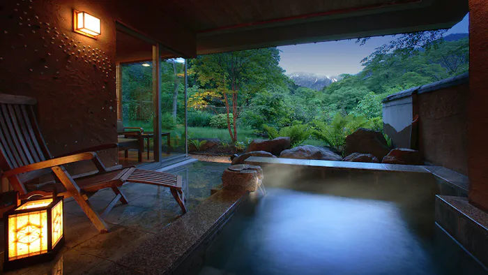 2. 箱根の森に佇む隠れ家宿で、2つの自家源泉の湯に癒される