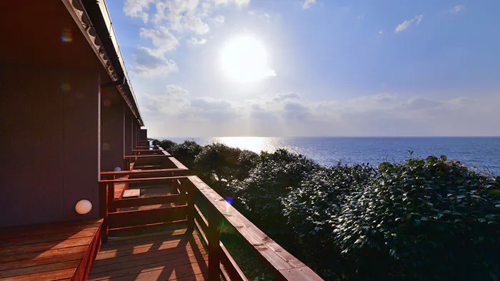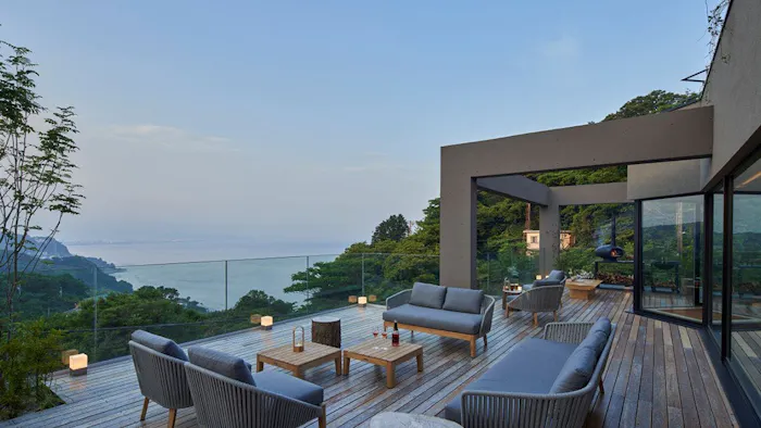 6.南紀州の海を広いテラスから一望、温泉と建築美が自慢の宿