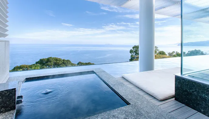 3.優雅でプライベートな空間で湯に浸かり海原を望む快感