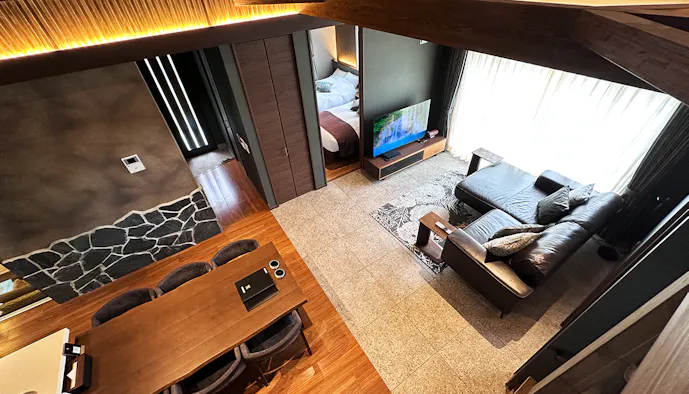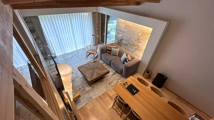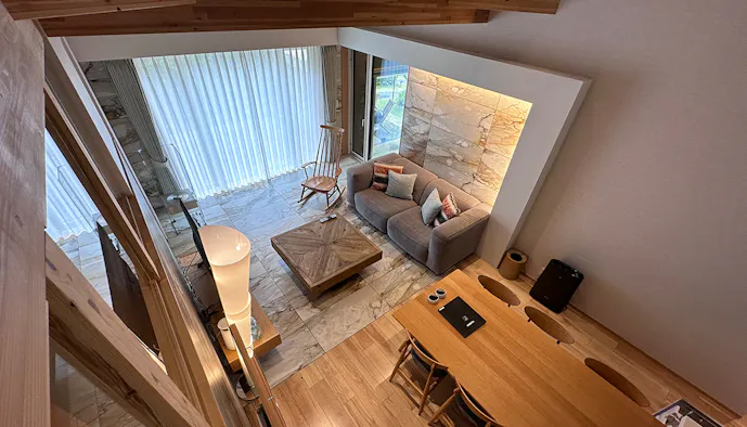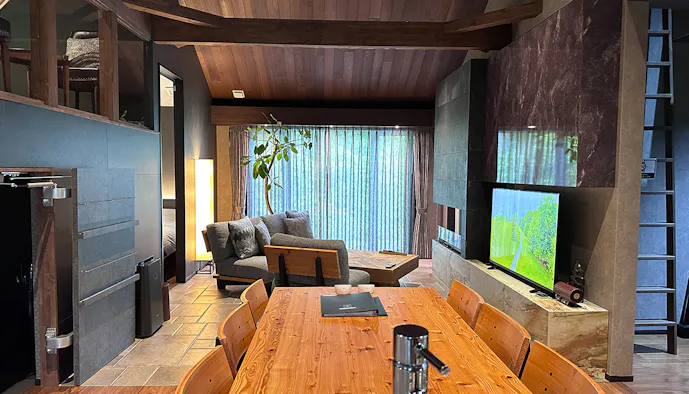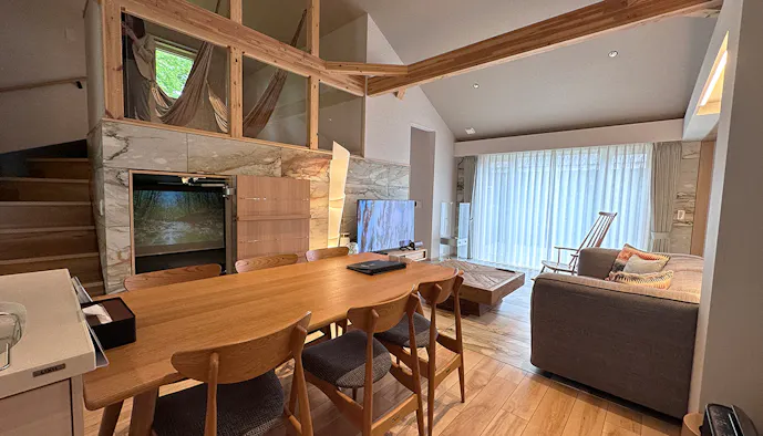 軽井沢駅より車で約20分のところに位置する自然に囲まれた全6棟一棟貸し施設「GREENSEED軽井沢」。全てのお部屋は100平米以上の広さを誇り、BBQを楽しめるアウトドアリビングやシアタールーム、ハンモックを備え、ホテルにはない一棟貸しの別荘だからこそ味わえる滞在が叶います。
