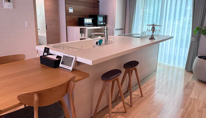 キッチンスペースには、「CLOUD(クラウド)<雲>」のお部屋同様オープンキッチンを完備。開放的な空間でお料理をすれば、会話も弾みそうですね!