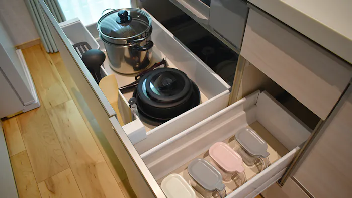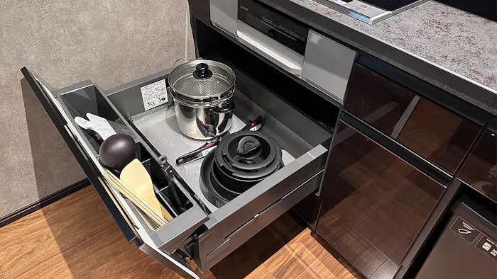 お鍋などの調理器具から、小分けの調味料まで完備されているので、料理の幅が広がります。