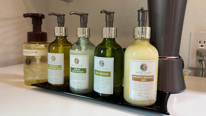 アメニティは、メイクオフクレンジングをはじめ化粧水や乳液まで完備されておりホテル同等、またはそれ以上の充実度!手ぶらで来てもなんでも揃っているので安心です。