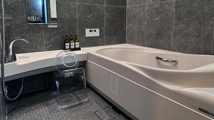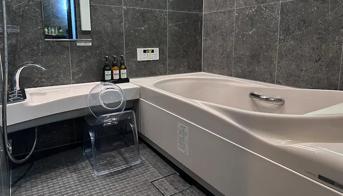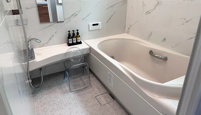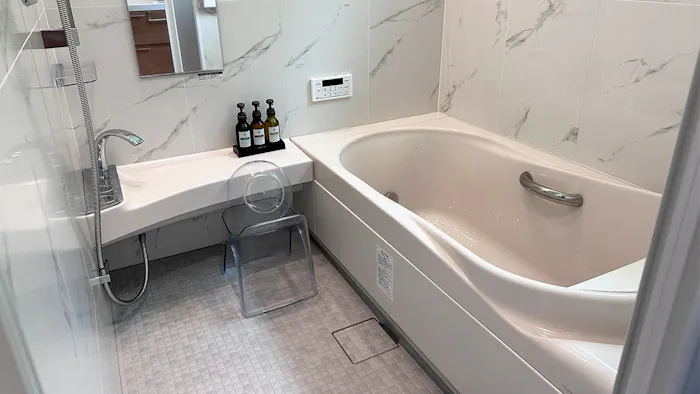 お風呂の浴槽も清潔感溢れ、ゆったりバスタイムを過ごせそう。